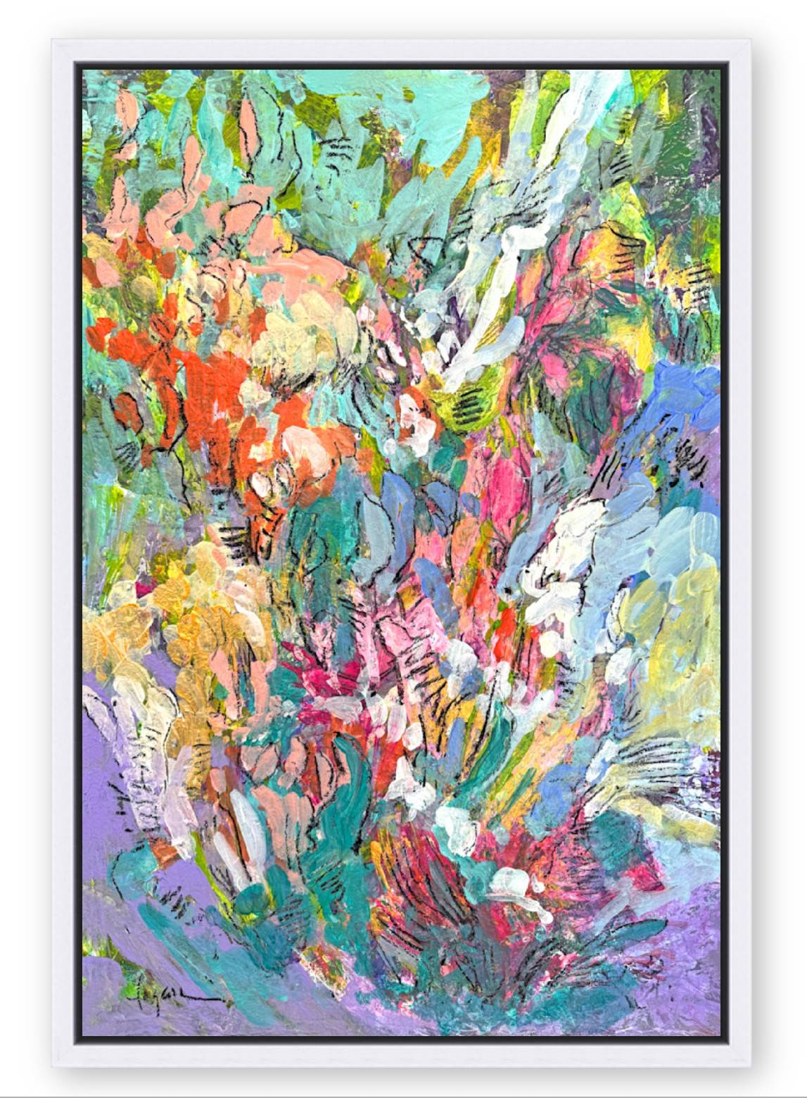 Framed Artist Edition Canvas, overall size 39" x 27" (Includes White Slim Float Frame, certificate of authenticity, shipping, and Flourish Collective Membership) Will be shipped in approximately 6 weeks, after your 2nd payment is received.