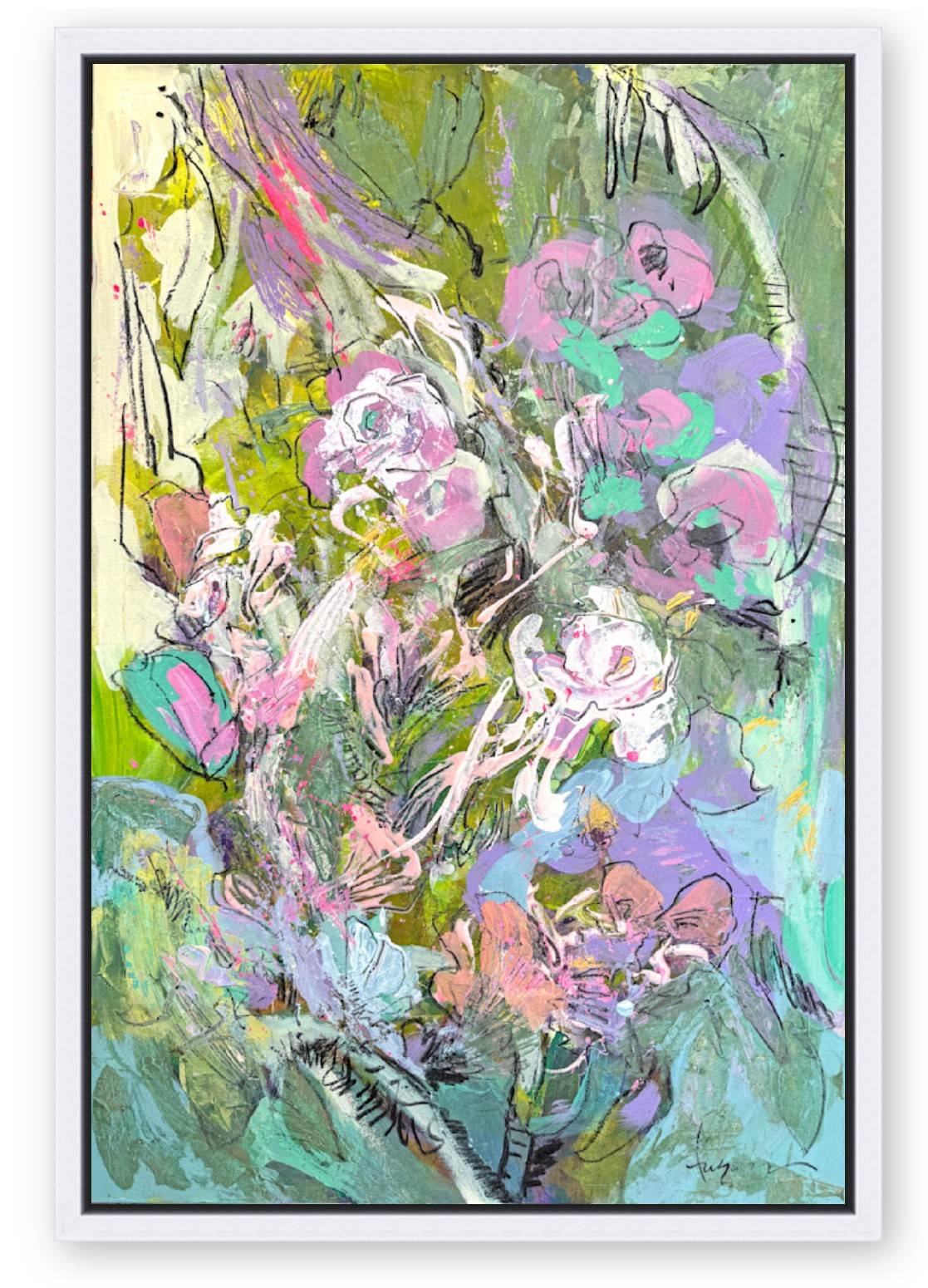 Framed Artist Edition Canvas, overall size 39" x 27" (Includes White Slim Float Frame, certificate of authenticity, shipping, and Flourish Collective Membership) Will be shipped in approximately 6 weeks, after your 2nd payment is received.